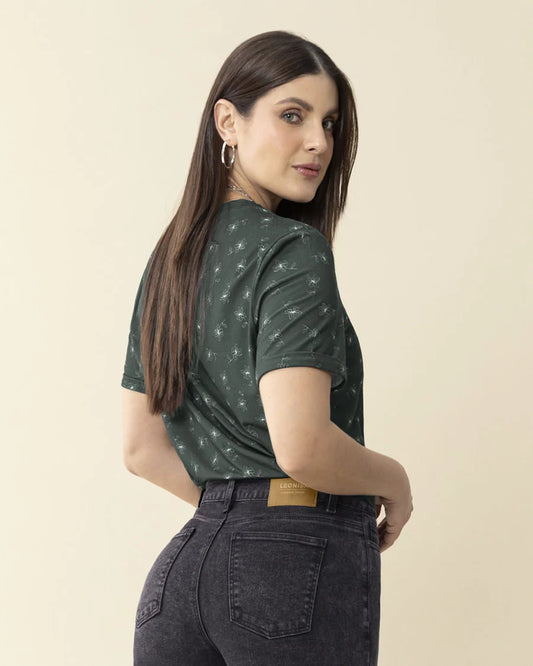 Camiseta estampada cuello alto con un toque de transparencia