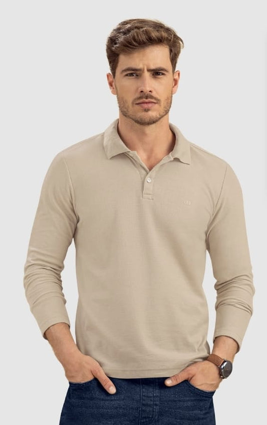 Camiseta tipo polo manga larga con logo bordado en frente