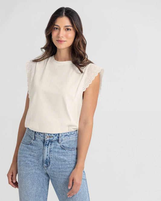Camiseta manga sisa con detalle ojalillo en hombros - LF7017