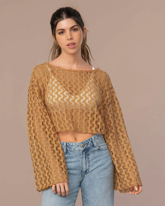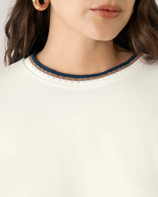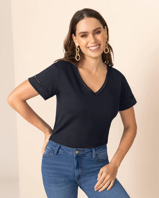Camiseta con detalle de escalerilla en cuello y mangas - L F7318