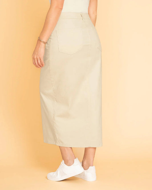 Falda larga en denim con abertura asimétrica en frente - F7216M