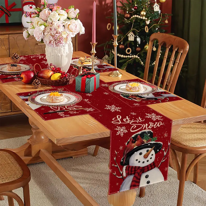 Cuando llega la temporada invernal, lo que más deseamos es que nuestro hogar refleje calidez, pertenencia y magia festiva. Con este juego de 1 camino de mesa + 4 manteles individuales “Let It Snow” en estilo rústico, solucionas el típico problema de decorar la mesa de Navidad de modo armonioso y con coherencia, sin tener que mezclar elementos dispares. El cliente ideal es quien cuida los detalles del hogar, desea transmitir tradición y autenticidad, y busca decoraciones que emocionen sin exceso. Vive sus días en un entorno familiar, alrededor de cenas con seres queridos, desea que el espacio hable de ella/él, y valora estética, calidad y significado emocional.