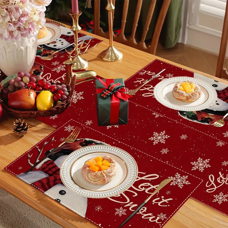 Uso: embellecer mesas de comedor y cocina durante Navidad, cenas familiares, reuniones festivas.