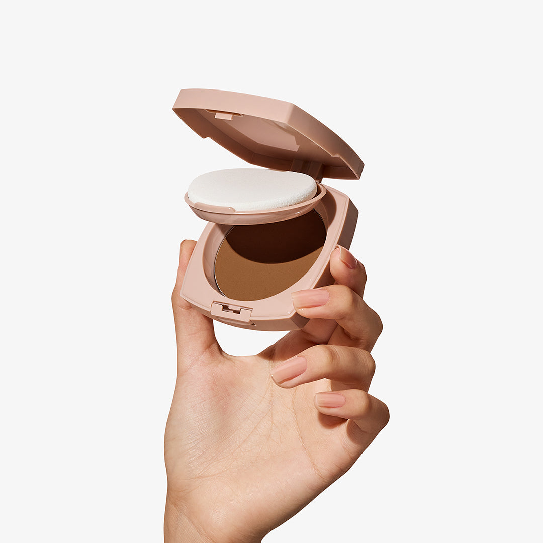 Recomendamos usar nuestra esponja húmeda para la base y una brocha seca para el polvo, asegurando un acabado perfecto y duradero.
