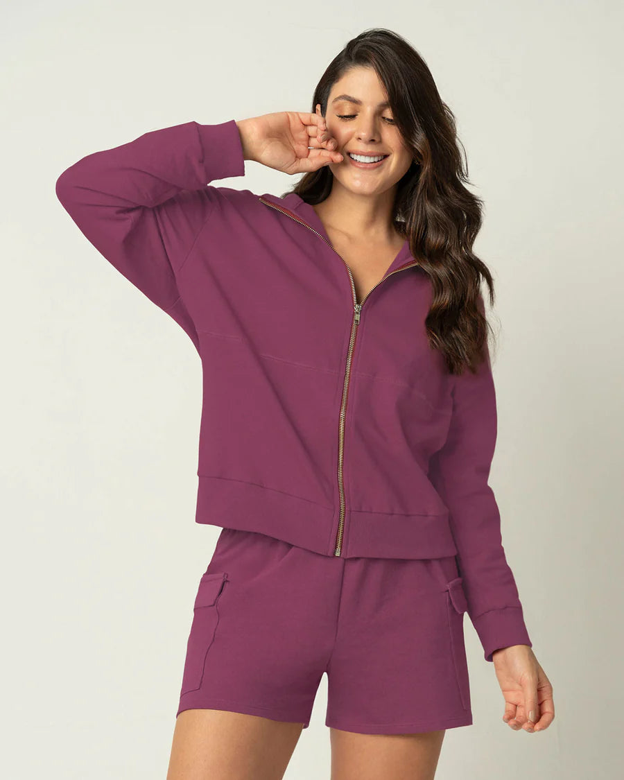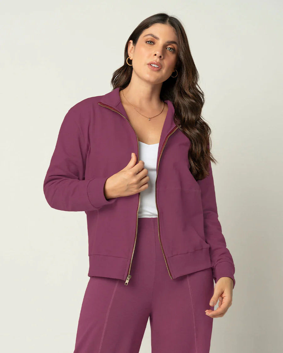 ¡Transforma tu estilo diario con nuestro Buzo Manga Larga con Cierre en Frente en color Morado Medio!