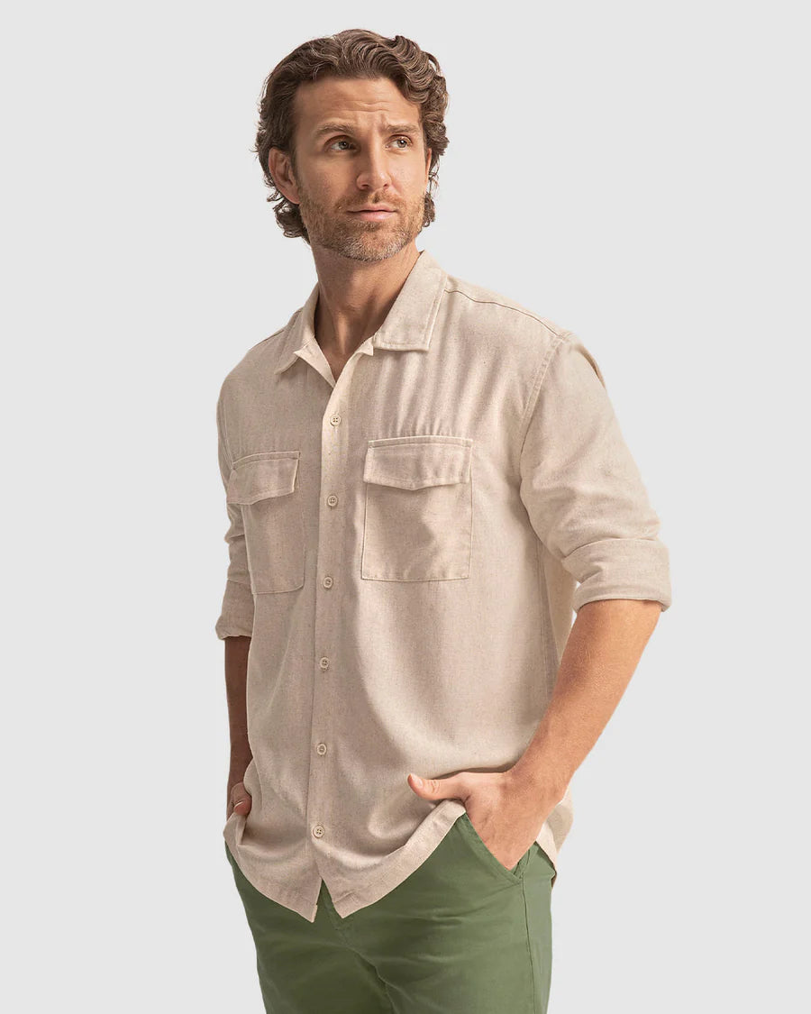 Camisa maga larga con botones funcionales y bolsillos de parche con tapa
