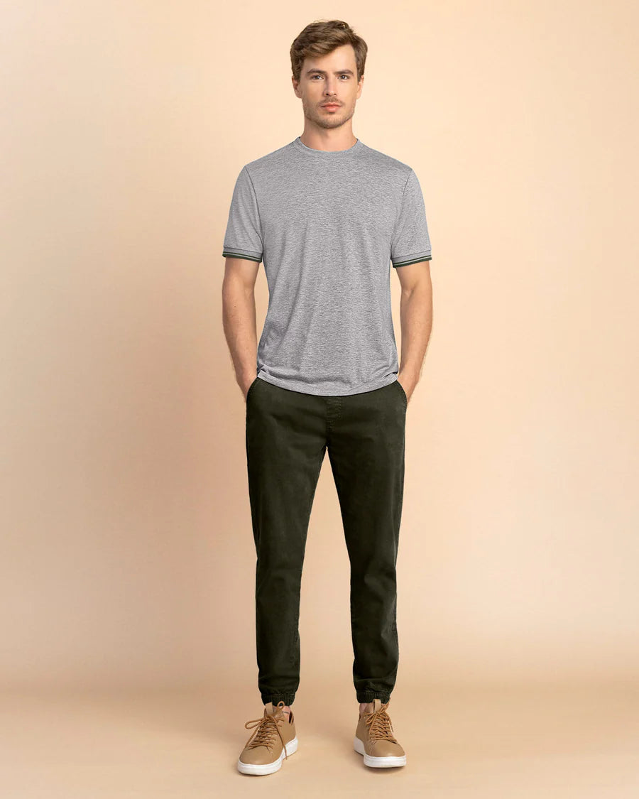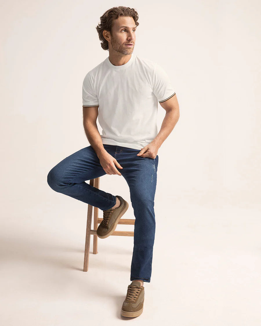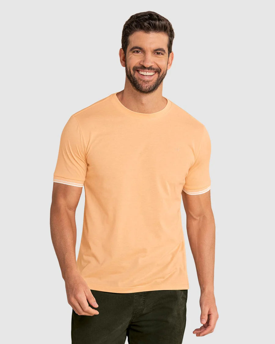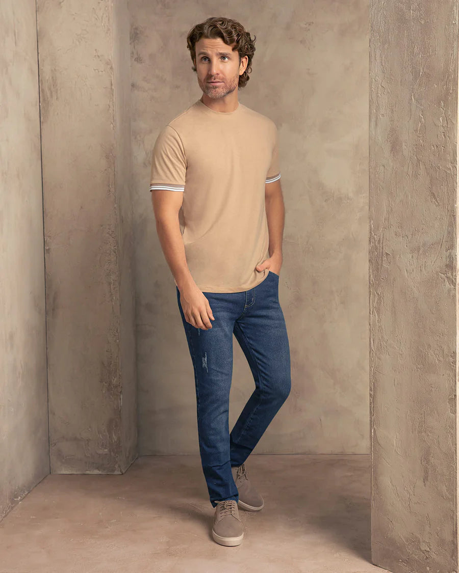 Nuestra camiseta de manga corta con cuello redondo es la solución perfecta para quienes valoran la comodidad sin sacrificar estilo. Ideal para hombres activos que desean sentirse frescos y confiados en su rutina diaria, esta prenda responde a la necesidad de ropa práctica, ligera y con un toque elegante. Ya sea en un paseo casual, en la oficina o en un fin de semana de descanso, esta camiseta se adapta a tu entorno, brindándote libertad de movimiento y un look fresco en cualquier momento y lugar.