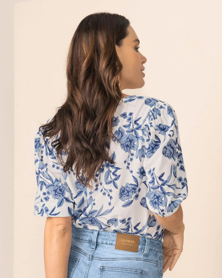 - Diseño de manga 3/4 con recogido en hombros y elástico en puños