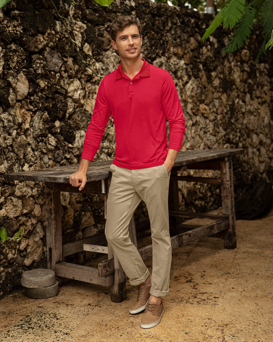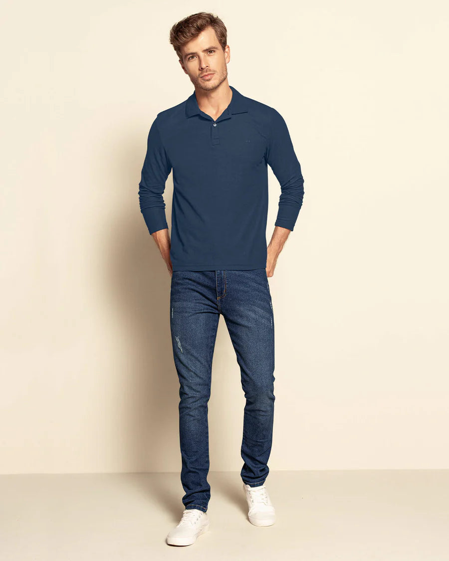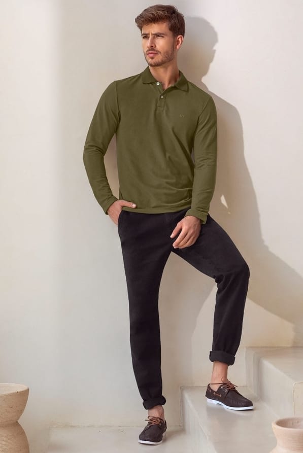 Nuestra camiseta polo manga larga es la solución perfecta para quienes buscan una prenda versátil, moderna y cálida. Ideal para hombres que valoran la elegancia casual, esta camiseta responde a la necesidad de mantenerse abrigados sin perder sofisticación. Imagina un día fresco en la ciudad, rodeado de un entorno urbano, donde quieres sentirte cómodo pero a la vez con un look que refleje tu personalidad. Con esta prenda, podrás afrontar la temporada con confianza y estilo, disfrutando cada momento sin preocuparte por el frío.