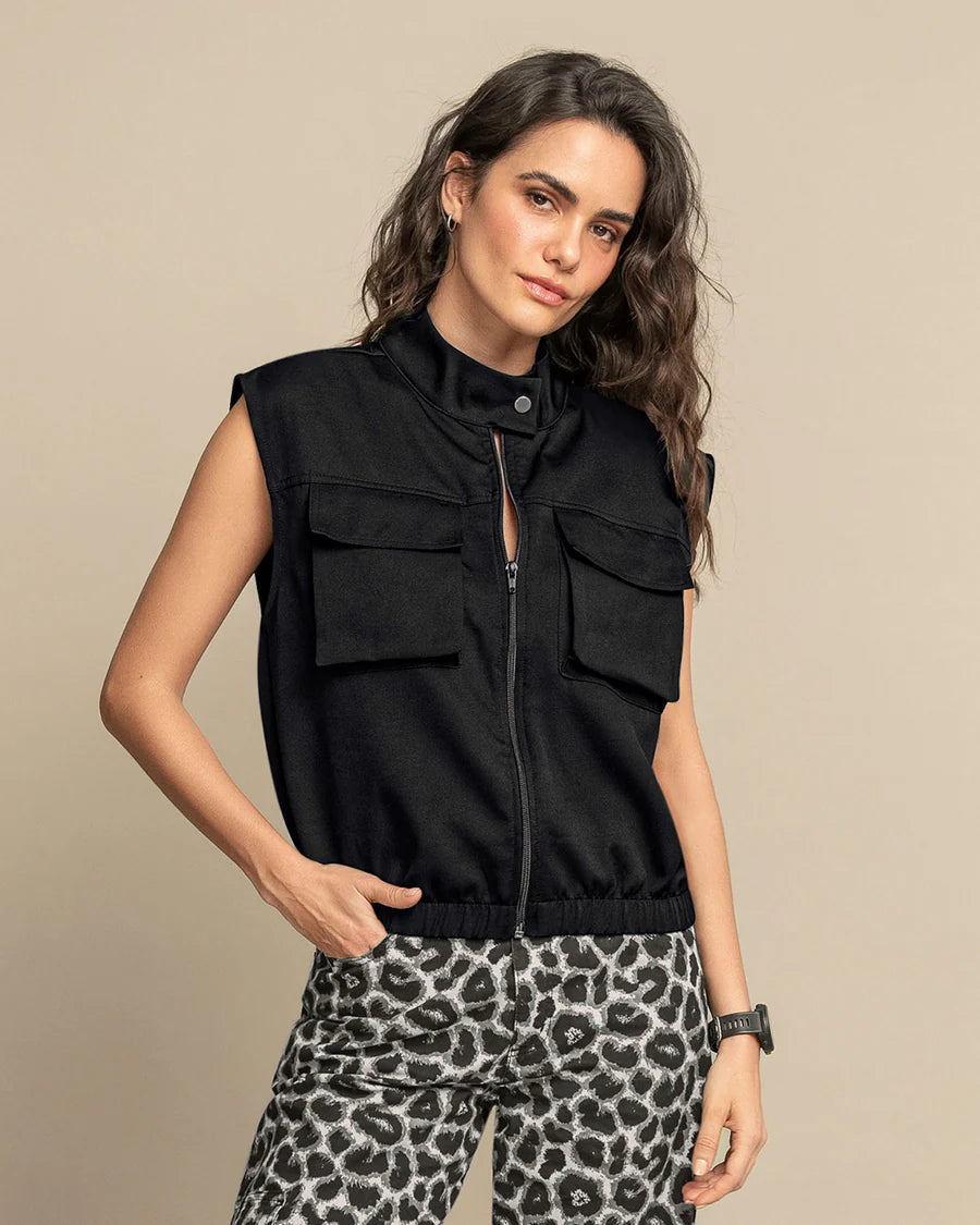Chaleco amplio con bolsillos cargo en frente - J3140