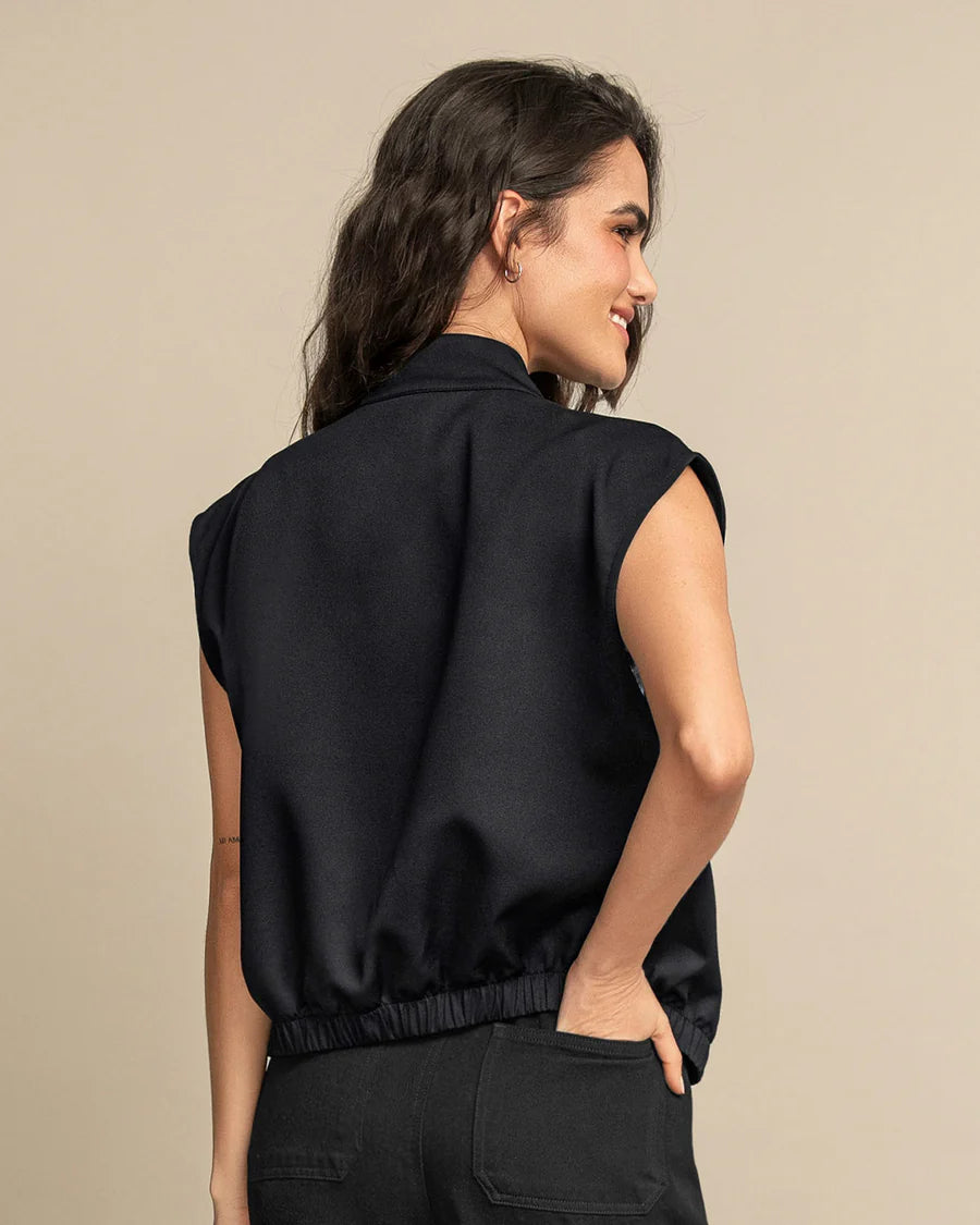 Nuestro chaleco combina un diseño estructurado y detalles urbanos que no encontrarás en ofertas similares. La incorporación del broche en el cuello y los bolsillos con tapas aportan un toque único, diferenciándose en calidad y estilo. Además, su silueta amplia y elástico en cintura ofrecen un ajuste cómodo y favorecedor, marcando tendencia y durabilidad.