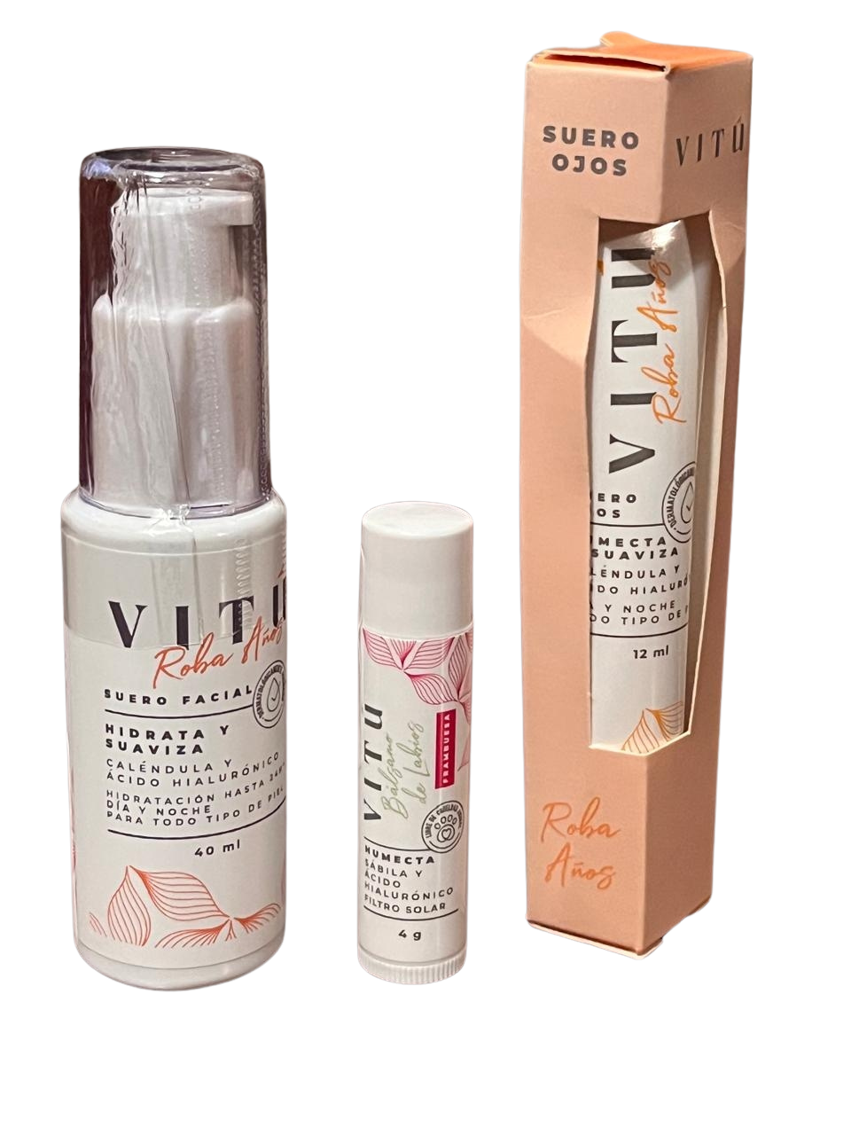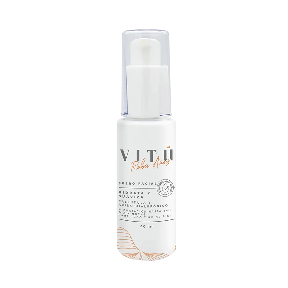Nuestro Vitú Roba Años Suero Facial de Caléndula y Ácido Hialurónico es el aliado perfecto para quienes desean lucir una piel más saludable, elástica y luminosa. Ideal para personas que valoran su bienestar, buscan productos de origen natural y desean sentirse seguras y renovadas en su rutina diaria. En un mundo acelerado, donde el estrés y la exposición a factores ambientales afectan nuestra piel, este suero ofrece un momento de cuidado y mimo para reconectar con su belleza natural y potenciar su confianza.