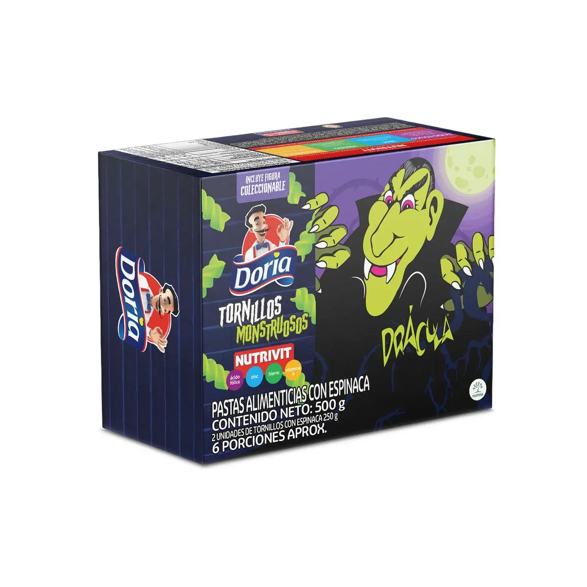 Doria Drácula x 500g transforma la hora de la cena en una experiencia lúdica y saludable: tornillos en forma de monstruos de espinaca que encajan en recetas fáciles y atractivas, perfectas para Halloween o cualquier día en que quieras darle un toque “monstruoso” a tu menú. Ideal para familias que valoran una alimentación natural y enriquecida: espinaca 100% natural, con ácido fólico, hierro, zinc y vitamina A. El cliente ideal es quien quiere cocinar con alegría, cuidar la nutrición y fomentar la imaginación de sus pequeños. Vive en un hogar urbano o suburbano, entre rutinas de trabajo y estudio, buscando momentos de conexión familiar, recuerdos divertidos y hábitos saludables que se integren sin complicaciones en la vida diaria.