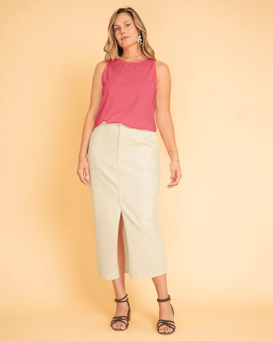 Descubre la falda larga en denim color marfil, la prenda imprescindible que transforma tu look diario en una declaración de estilo y comodidad. Ideal para mujeres modernas que buscan verse bien sin sacrificar funcionalidad, esta falda resuelve el problema de encontrar una prenda versátil, duradera y a la moda que se adapte a cualquier ocasión. En un entorno urbano, dinámico y lleno de movimiento, esta pieza te acompaña para expresar tu personalidad con confianza y sofisticación, adaptándose a tu ritmo de vida y a tus emociones de independencia y estilo.