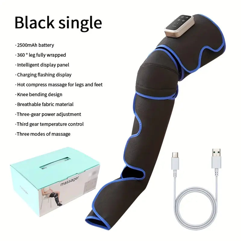 Nuestro masajeador se diferencia por su doble funcionalidad: viene en un paquete de 2 piezas, permitiéndote tratar ambas piernas simultáneamente para una relajación más completa. Su batería de larga duración (2500mAh, recargable vía USB) garantiza sesiones prolongadas sin preocupaciones de recarga constante. Además, su tejido duradero y diseño ergonómico aseguran comodidad y resistencia. A diferencia de otros productos en el mercado, nuestro masajeador combina tecnología de calidad con un estilo moderno, adaptándose a tu estilo de vida activo y exigente.