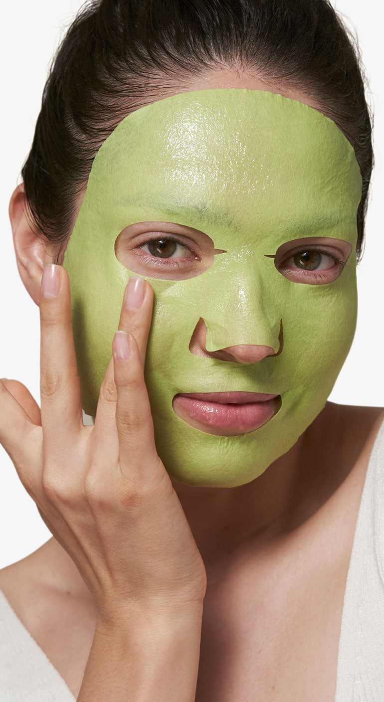 - Coloca la mascarilla con el lado de color hacia abajo, ajustándola a tu contorno facial.