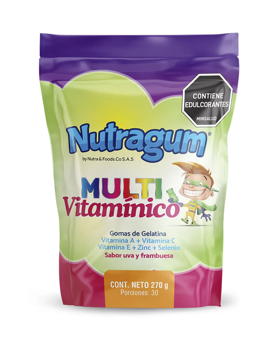 Nutragum Multivitamínico es la solución perfecta para padres que desean apoyar el bienestar, crecimiento y sistema inmunológico de sus pequeños de manera fácil, segura y sabrosa. En un mundo lleno de desafíos y exposiciones a agentes externos, tus hijos necesitan un refuerzo natural que les ayude a mantenerse activos, felices y saludables. Nutragum transforma la rutina de cuidado en un momento de disfrute, brindando un suplemento que combina nutrición de calidad con sabores irresistibles, adaptándose a las necesidades de familias que valoran el bienestar y la protección.