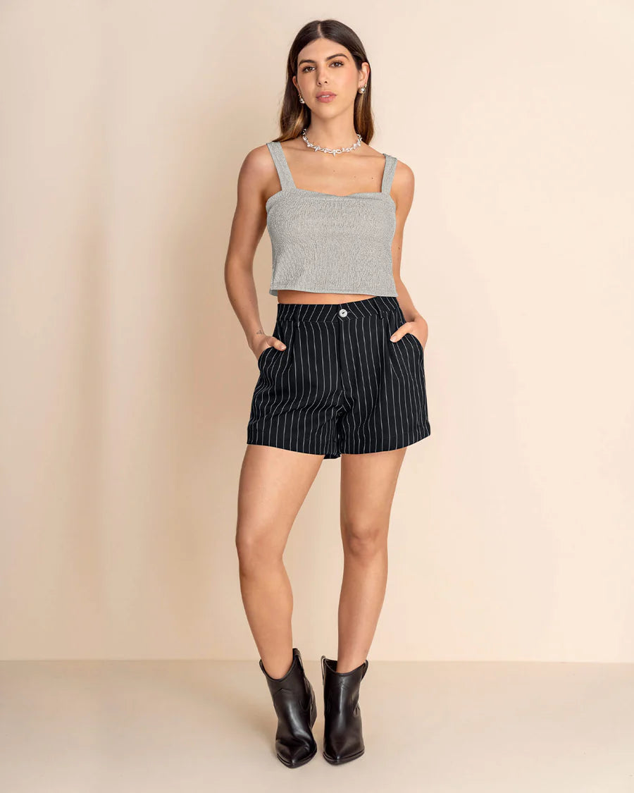 Descubre el short corto de estampado de rayas en color negro, la prenda perfecta para quienes desean combinar practicidad y estilo en su día a día. Ideal para mujeres modernas que buscan elevar sus looks casuales con un toque de elegancia y sofisticación, este short responde a la necesidad de vestir con comodidad sin sacrificar la estética. Imagina un entorno urbano, donde el ritmo acelerado de la ciudad exige prendas versátiles que acompañen tu estilo en cada momento. Con este short, podrás sentirte segura, atractiva y lista para conquistar cualquier ocasión, desde un paseo hasta una reunión informal, en un ambiente donde la moda y la funcionalidad se fusionan para potenciar tu confianza.