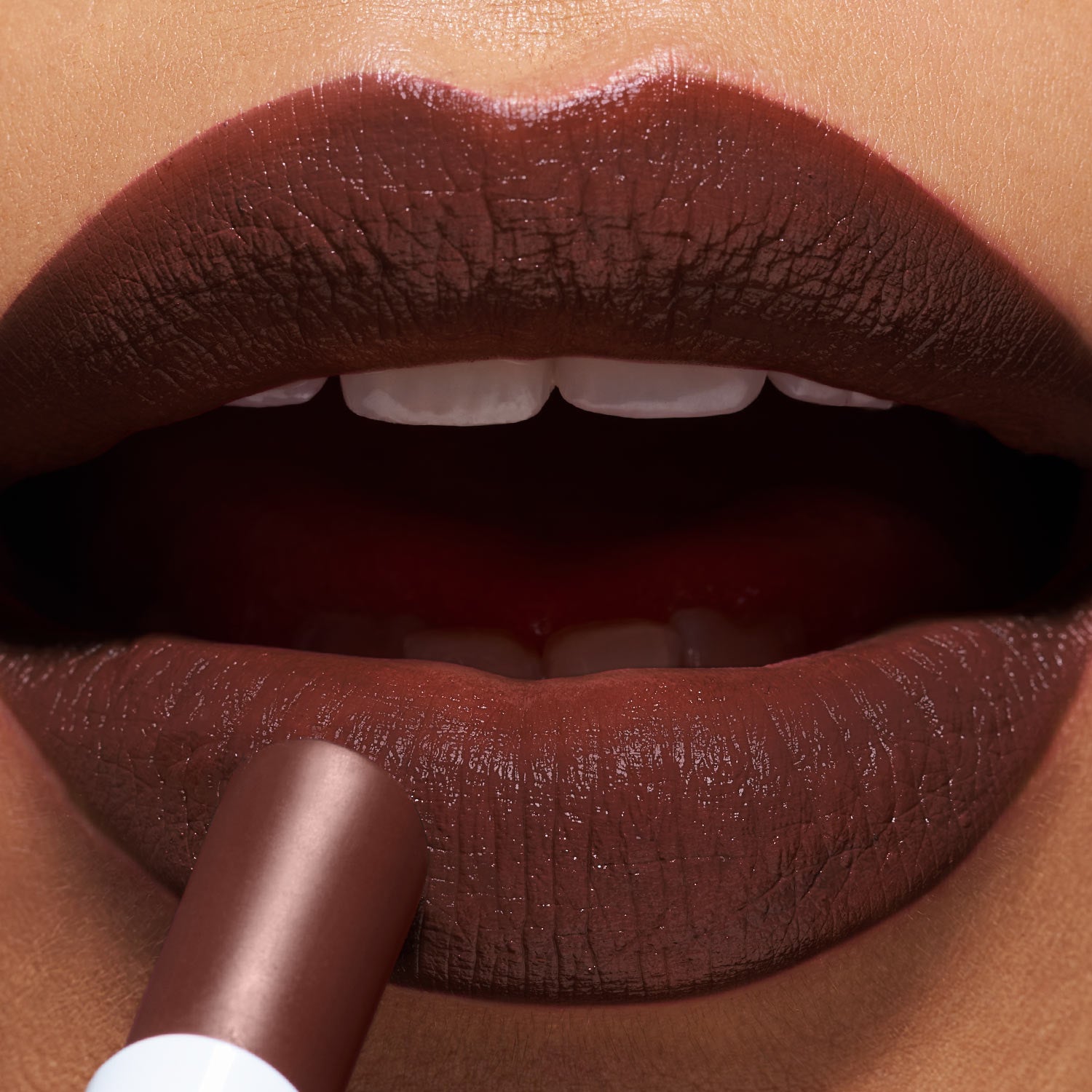 Desliza la barra sobre tus labios o usa un pincel para mayor precisión. Aplica en labios secos y limpios. Para mayor duración, define primero el contorno con un delineador similar.